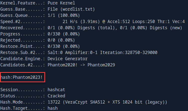 Here we see a VeraCrypt backup. We can attempt to convert that into a crackable hash. First, let’s generate a word list like so: