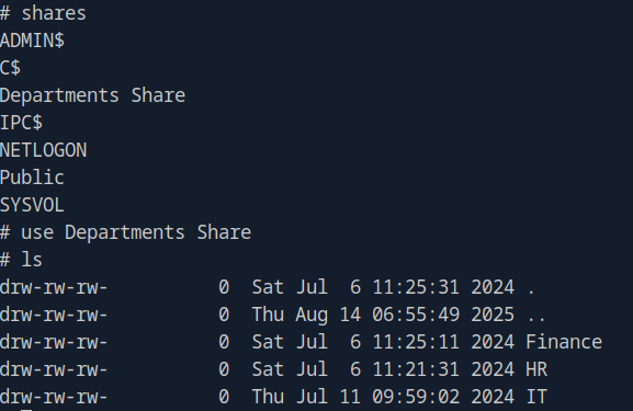 Now that we’ve identified a valid domain user using this password, we can go back and see what SMB shares we can access: