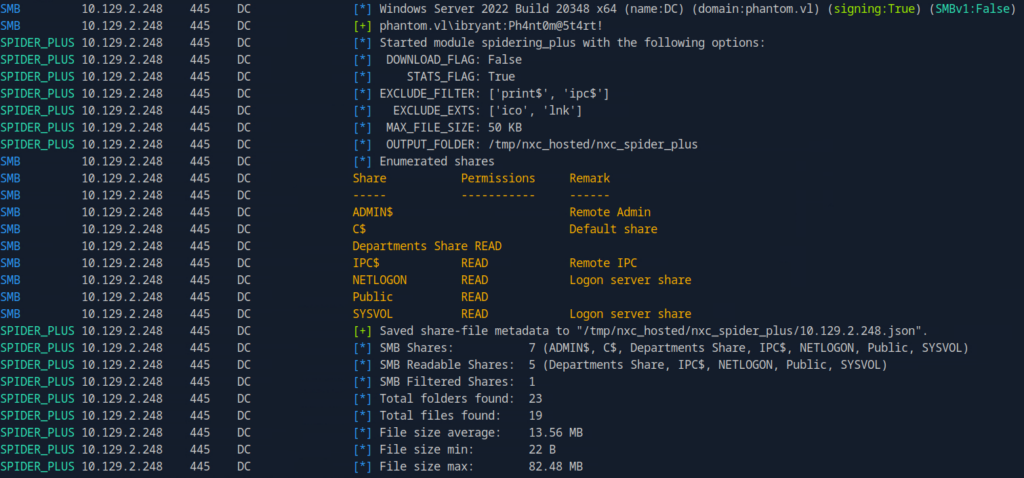 netexec smb phantom.vl -u ibryant -p 'Ph4nt0m@5t4rt!' -M spider_plus