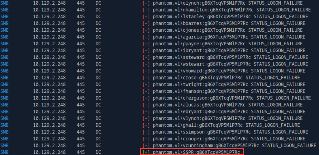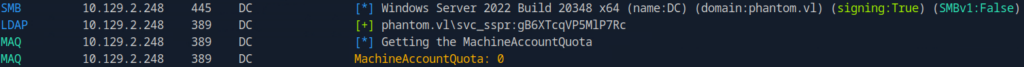 SMB 10.129.234.63 445 DC [+] phantom.vl\SSPR:SSPR