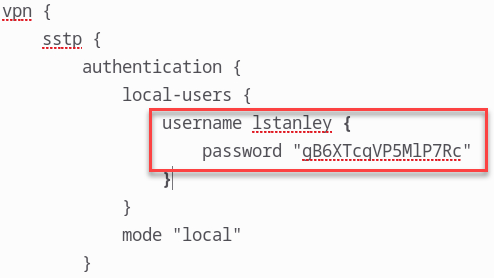 Applying a bit of OSINT gives us some information on sensitive files within VyOS being config.boot, so let’s see if we can pull some hardcoded credentials from the file.