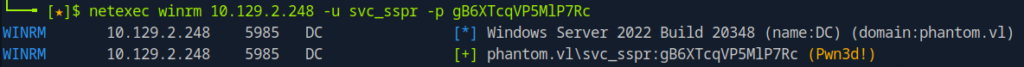 netexec winrm phantom.vl -u svc_sspr -p gB6XTcqVP5MlP7Rc
